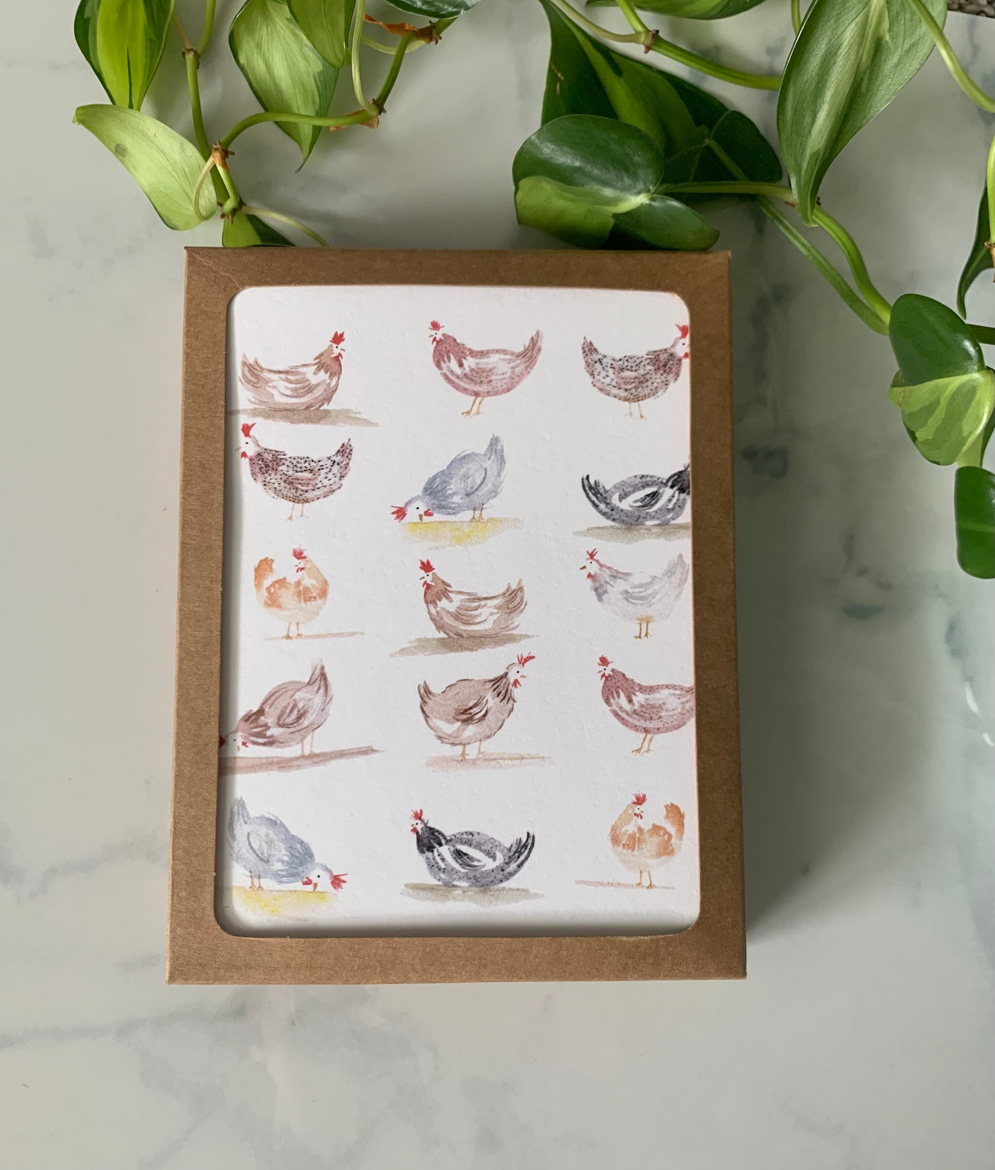 A box set consists of 6 greeting cards with envelopes in coordinating color.