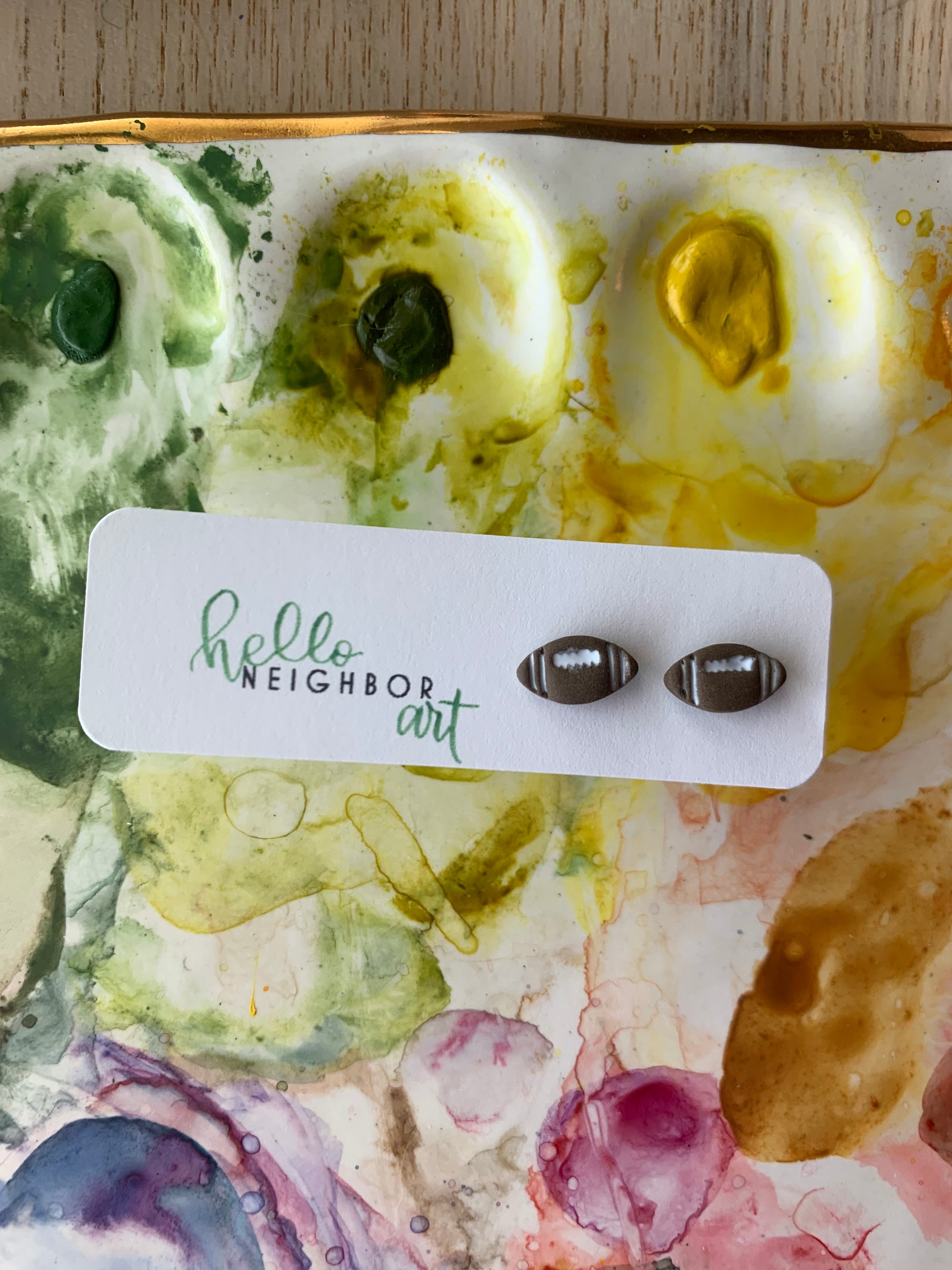 Polymer clay football studs.