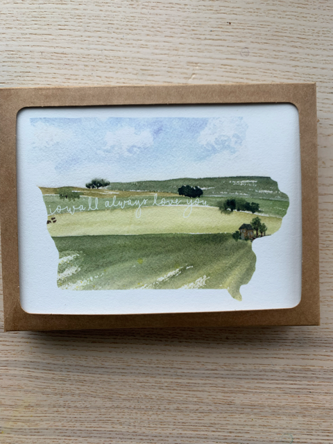 Andddddd IIIIIIIIIIowa'll Always Love You! Hand painted watercolor greeting card in the shape of Iowa.